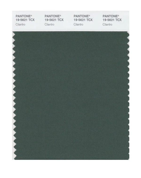 Cilantro is a deep and rich color from the Pantone TCX collection, identified by the code 19-5621 TCX. This cool tone with its balanced character makes it an excellent choice for wellness branding, spa environments, and serene design.