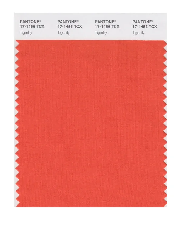Tigerlily is a medium-toned color from the Pantone TCX collection, identified by the code 17-1456 TCX. This warm tone with its vibrant and bold character makes it an excellent choice for luxury fashion, dramatic interiors, and premium branding.