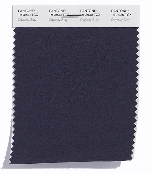 Odyssey Gray is a deep and rich color from the Pantone TCX collection, identified by the code 19-3930 TCX. This cool tone with its balanced character makes it an excellent choice for premium branding, luxury services, and sophisticated design.