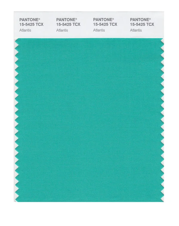 Atlantis is a medium-toned color from the Pantone TCX collection, identified by the code 15-5425 TCX. This cool tone with its vibrant and bold character makes it an excellent choice for wellness branding, spa environments, and serene design.