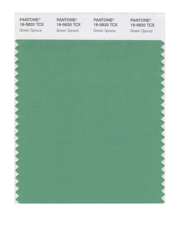 Green Spruce is a medium-toned color from the Pantone TCX collection, identified by the code 16-5820 TCX. This cool tone with its balanced character makes it an excellent choice for wellness branding, spa environments, and serene design.