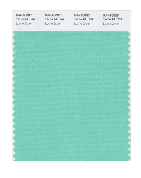 Lucite Green is a medium-toned color from the Pantone TCX collection, identified by the code 14-5714 TCX. This cool tone with its balanced character makes it an excellent choice for tropical themes, jewelry design, and exotic branding.