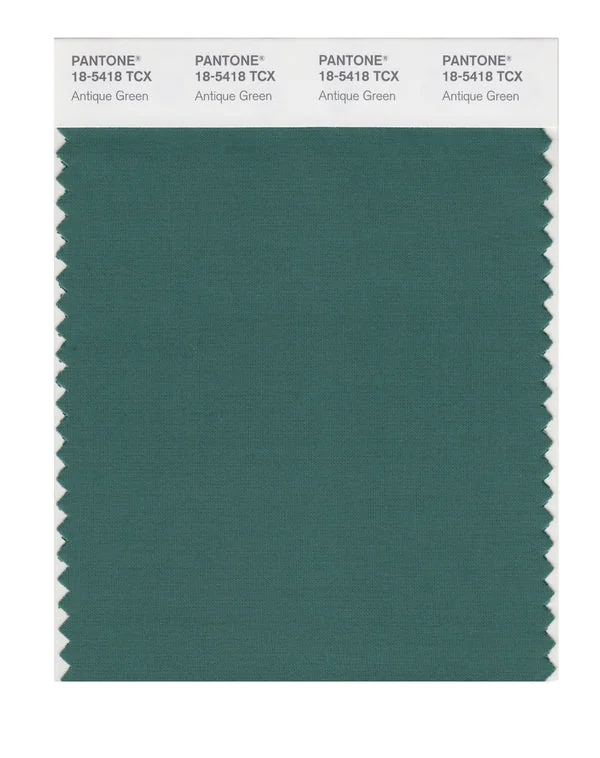 Antique Green is a deep and rich color from the Pantone TCX collection, identified by the code 18-5418 TCX. This cool tone with its balanced character makes it an excellent choice for wellness branding, spa environments, and serene design.