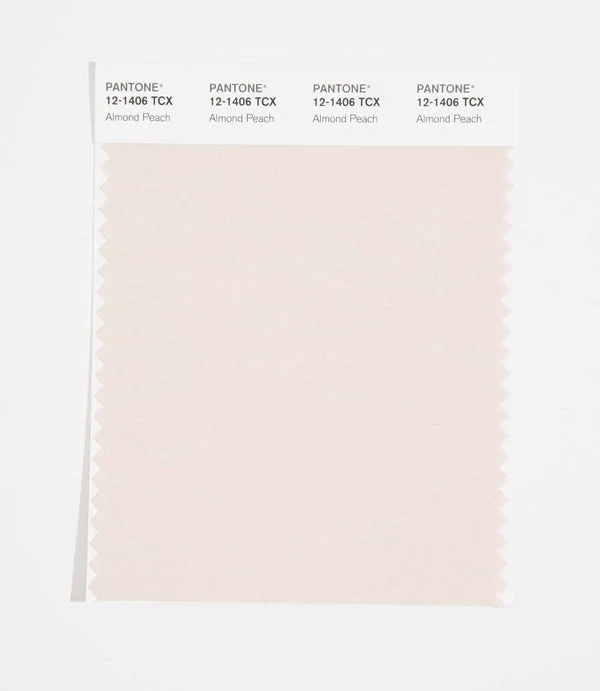 Almond Peach is a light and airy color from the Pantone TCX collection, identified by the code 12-1406 TCX. This warm tone with its balanced character makes it an excellent choice for soft femininity, wellness branding, and gentle aesthetics.