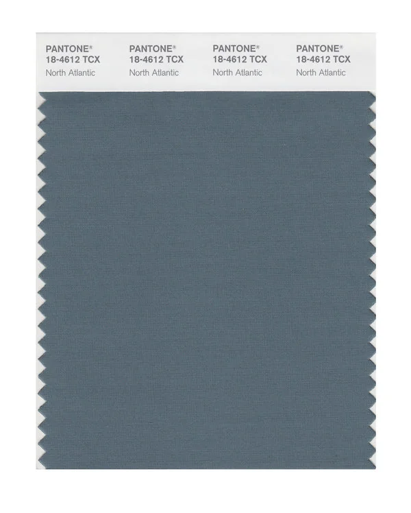 North Atlantic is a medium-toned color from the Pantone TCX collection, identified by the code 18-4612 TCX. This cool tone with its balanced character makes it an excellent choice for industrial design, modern architecture, and tech products.
