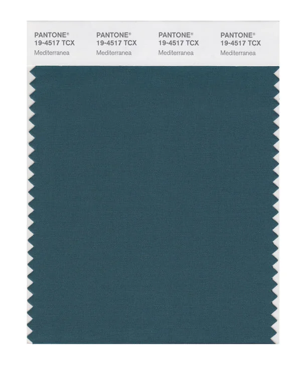 Mediterranea is a deep and rich color from the Pantone TCX collection, identified by the code 19-4517 TCX. This cool tone with its balanced character makes it an excellent choice for industrial design, modern architecture, and tech products.
