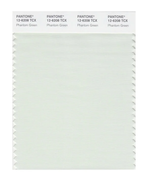 Phantom Green is a light and airy color from the Pantone TCX collection, identified by the code 12-6208 TCX. This cool tone with its soft and pastel character makes it an excellent choice for elegant neutrals, luxury textiles, and sophisticated design.