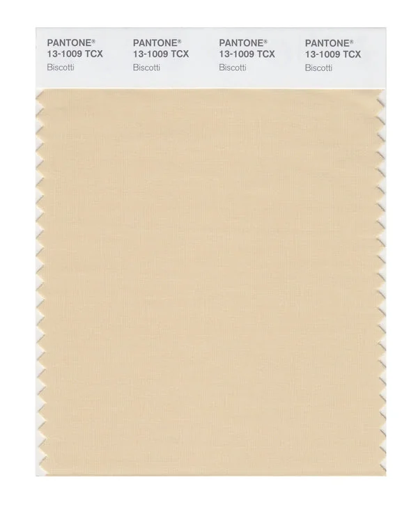 Biscotti is a light and airy color from the Pantone TCX collection, identified by the code 13-1009 TCX. This warm tone with its balanced character makes it an excellent choice for luxury branding, premium products, and elegant accents.