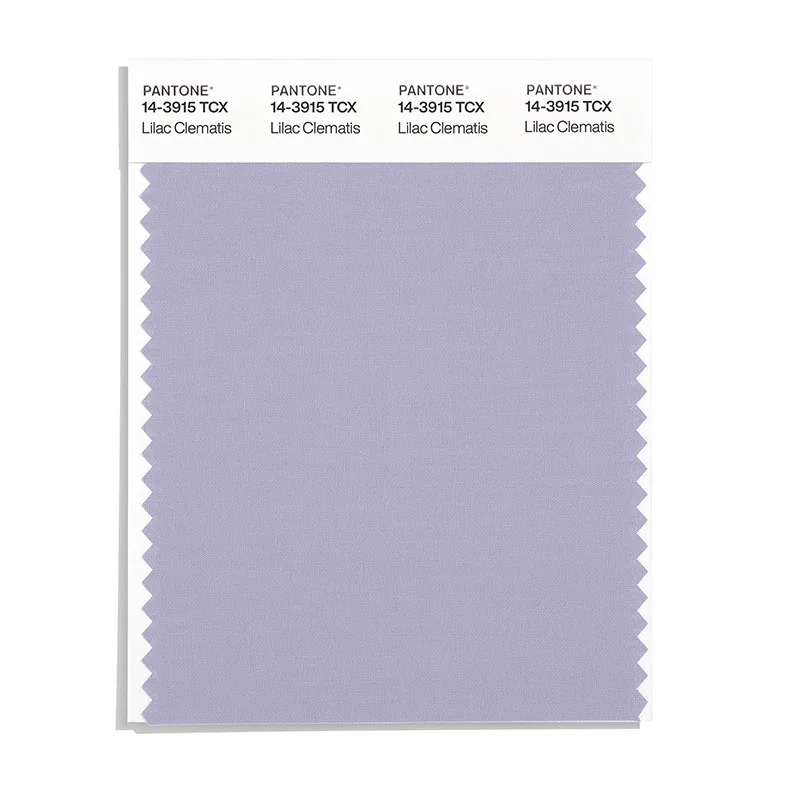 Lilac Clematis is a light and airy color from the Pantone TCX collection, identified by the code 14-3915 TCX. This cool tone with its balanced character makes it an excellent choice for soft elegance, baby products, and gentle branding.