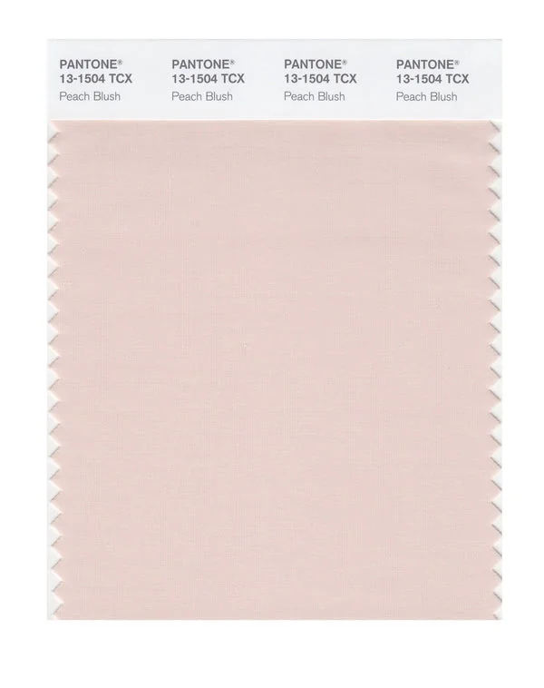 Peach Blush is a light and airy color from the Pantone TCX collection, identified by the code 13-1504 TCX. This warm tone with its soft and pastel character makes it an excellent choice for tropical themes, summer collections, and vibrant branding.