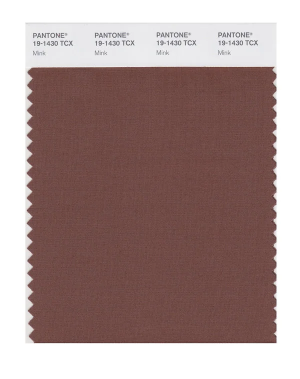 Mink is a medium-toned brown from the Pantone TCX collection, identified by the code 19-1430 TCX. This warm tone with its balanced character makes it an excellent choice for natural products, rustic design, and earthy branding.