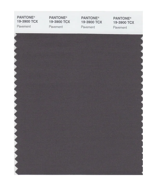 Pavement is a medium-toned black from the Pantone TCX collection, identified by the code 19-3900 TCX. This warm tone with its balanced character makes it an excellent choice for luxury branding, formal wear, and sophisticated design.