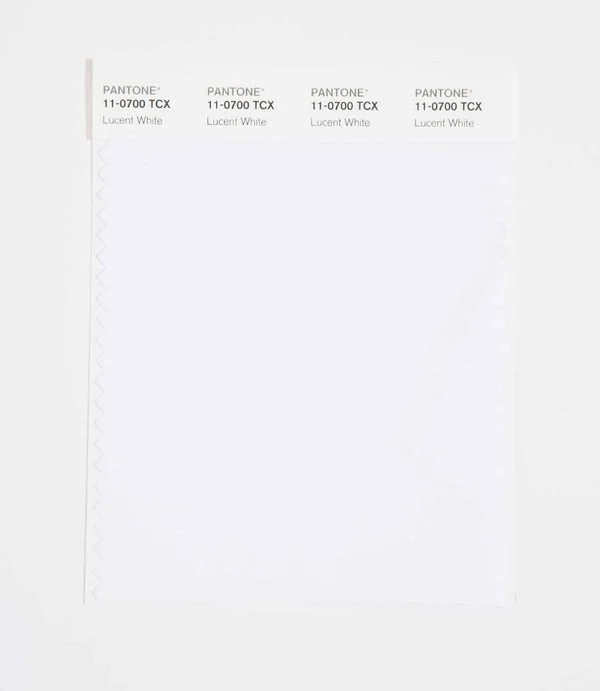 Lucent White is a light and airy color from the Pantone TCX collection, identified by the code 11-0700 TCX. This cool tone with its vibrant and bold character makes it an excellent choice for wellness products, gentle branding, and calming design.