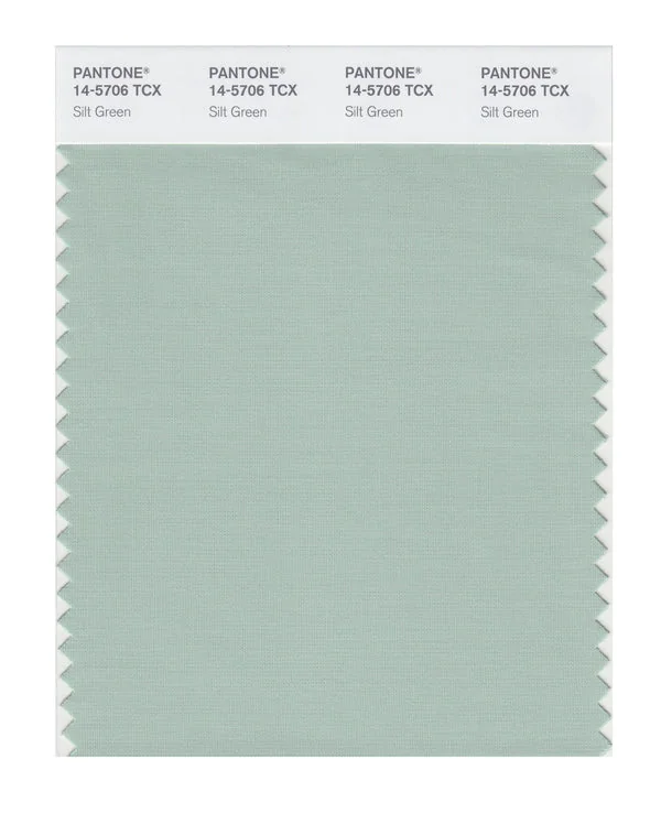 Silt Green is a light and airy green from the Pantone TCX collection, identified by the code 14-5706 TCX. This cool tone with its balanced character makes it an excellent choice for sustainability, nature brands, and eco-friendly design.