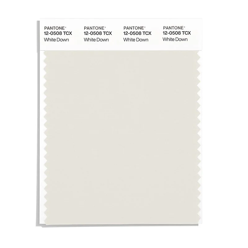 White Down is a light and airy color from the Pantone TCX collection, identified by the code 12-0508 TCX. This warm tone with its soft and pastel character makes it an excellent choice for elegant neutrals, luxury textiles, and sophisticated design.