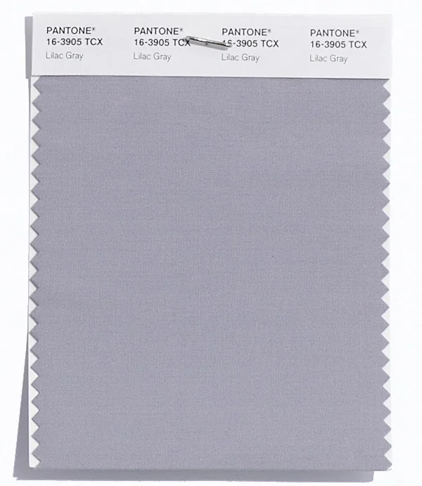 Lilac Gray is a medium-toned color from the Pantone TCX collection, identified by the code 16-3905 TCX. This cool tone with its balanced character makes it an excellent choice for soft elegance, baby products, and gentle branding.