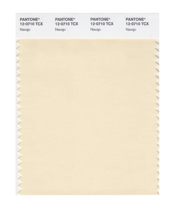 Navajo is a light and airy color from the Pantone TCX collection, identified by the code 12-0710 TCX. This warm tone with its balanced character makes it an excellent choice for soft warmth, wellness products, and gentle branding.