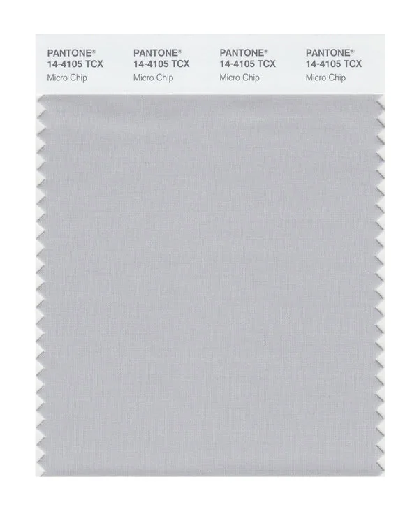 Micro Chip is a light and airy gray from the Pantone TCX collection, identified by the code 14-4105 TCX. This cool tone with its balanced character makes it an excellent choice for professional environments, industrial design, and neutral foundations.