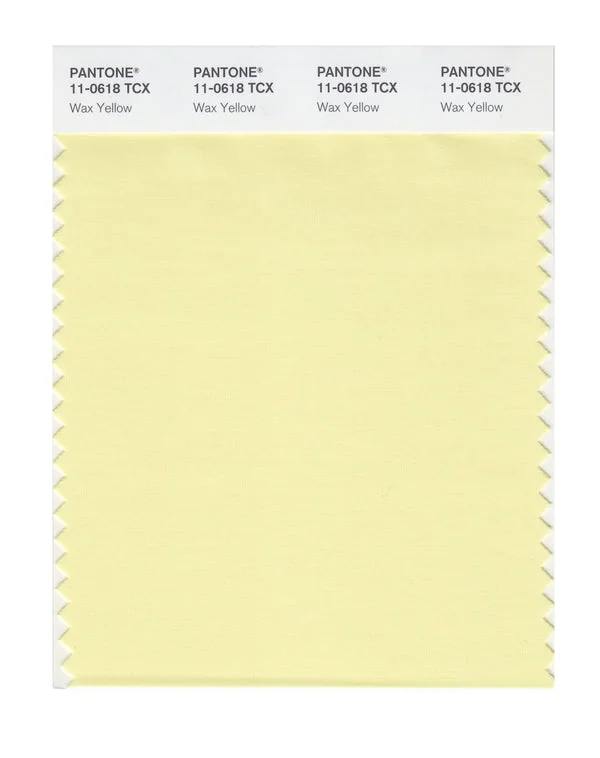 Wax Yellow is a light and airy yellow from the Pantone TCX collection, identified by the code 11-0618 TCX. This warm tone with its balanced character makes it an excellent choice for optimistic branding, children's products, and energizing spaces.