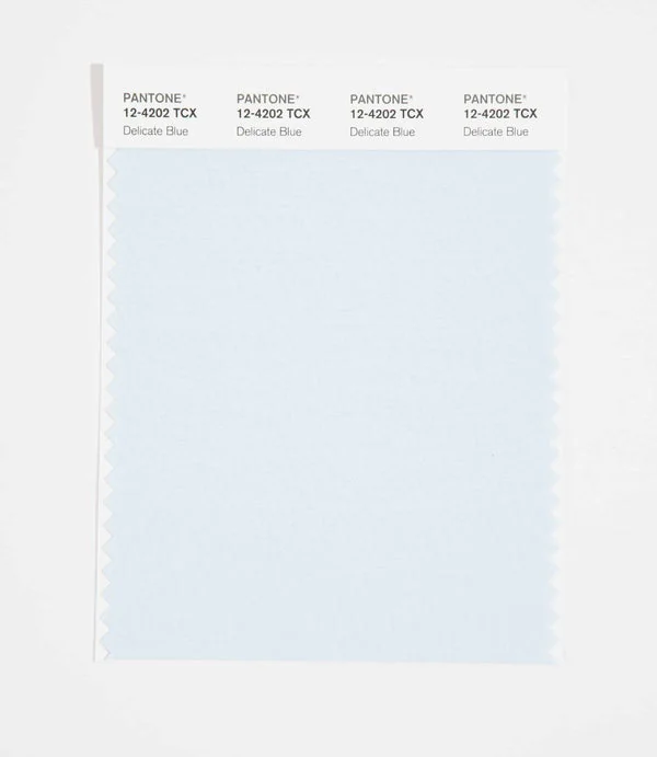 Delicate Blue is a light and airy color from the Pantone TCX collection, identified by the code 12-4202 TCX. This cool tone with its soft and pastel character makes it an excellent choice for digital branding, tech products, and modern design.