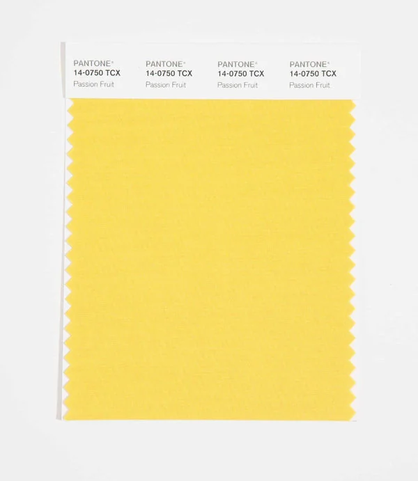 Passion Fruit is a medium-toned color from the Pantone TCX collection, identified by the code 14-0750 TCX. This warm tone with its balanced character makes it an excellent choice for warm luxury, artisanal products, and natural branding.