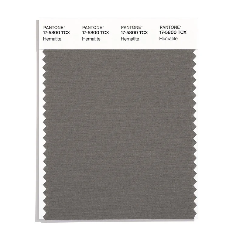 Hematite is a medium-toned color from the Pantone TCX collection, identified by the code 17-5800 TCX. This warm tone with its balanced character makes it an excellent choice for sophisticated neutrals, urban design, and modern aesthetics.