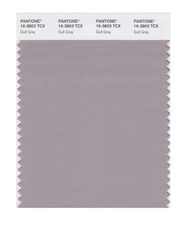 Gull Gray is a medium-toned gray from the Pantone TCX collection, identified by the code 16-3803 TCX. This warm tone with its balanced character makes it an excellent choice for professional environments, industrial design, and neutral foundations.