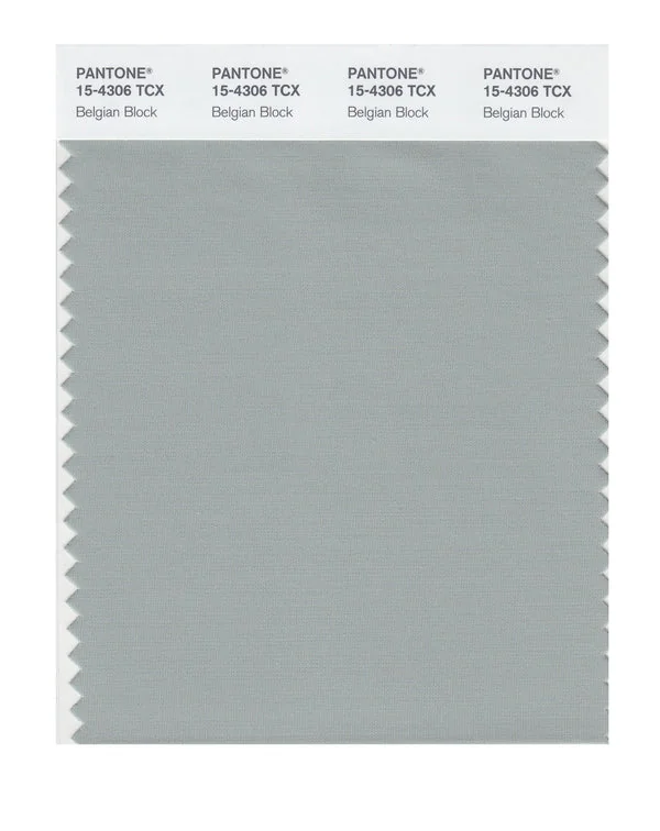 Belgian Block is a medium-toned gray from the Pantone TCX collection, identified by the code 15-4306 TCX. This cool tone with its balanced character makes it an excellent choice for professional environments, industrial design, and neutral foundations.