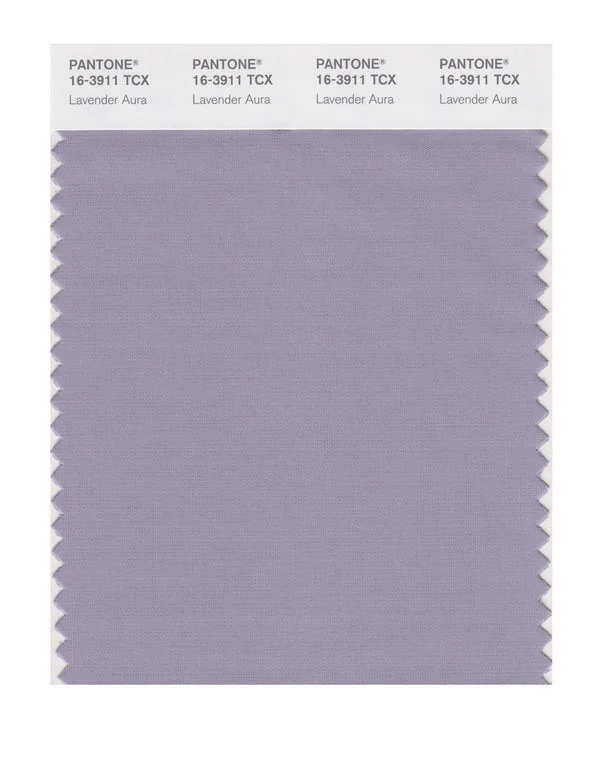 Lavender Aura is a medium-toned color from the Pantone TCX collection, identified by the code 16-3911 TCX. This cool tone with its balanced character makes it an excellent choice for soft elegance, baby products, and gentle branding.