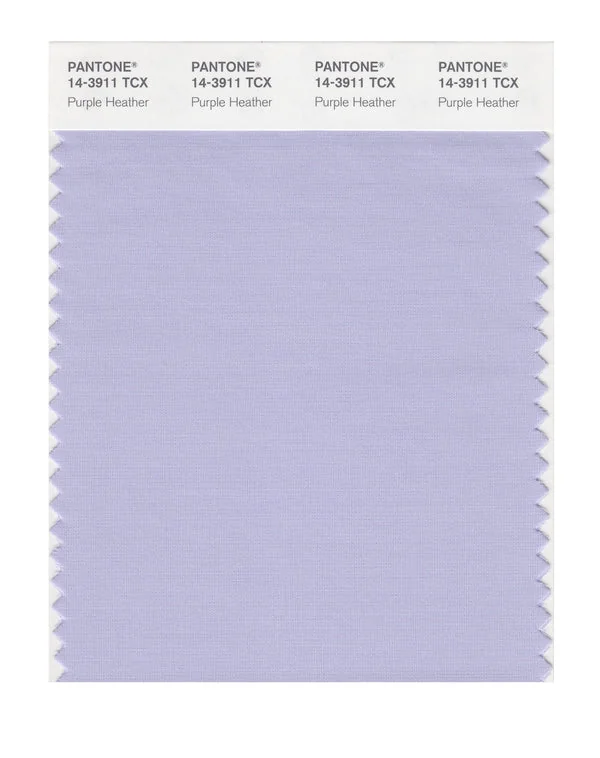 Purple Heather is a light and airy color from the Pantone TCX collection, identified by the code 14-3911 TCX. This cool tone with its balanced character makes it an excellent choice for soft elegance, baby products, and gentle branding.