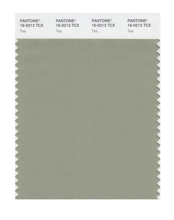 Tea is a medium-toned color from the Pantone TCX collection, identified by the code 16-0213 TCX. This cool tone with its balanced character makes it an excellent choice for natural products, military themes, and earthy design.