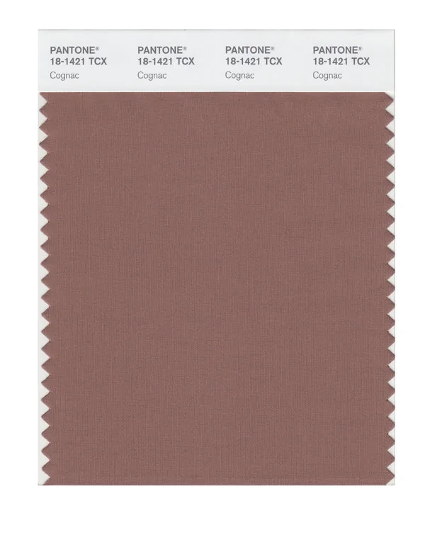 Cognac is a medium-toned color from the Pantone TCX collection, identified by the code 18-1421 TCX. This warm tone with its balanced character makes it an excellent choice for luxury fashion, dramatic interiors, and premium branding.