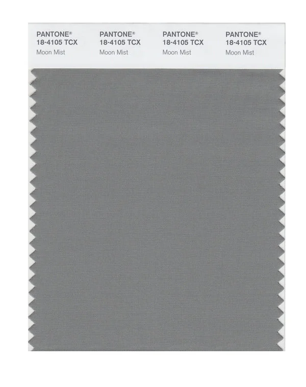 Moon Mist is a medium-toned color from the Pantone TCX collection, identified by the code 18-4105 TCX. This cool tone with its balanced character makes it an excellent choice for sophisticated neutrals, urban design, and modern aesthetics.