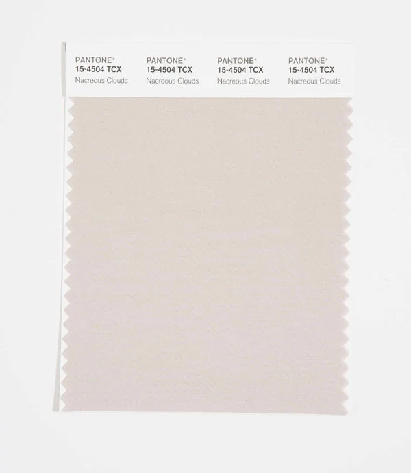 Nacreous Clouds is a medium-toned color from the Pantone TCX collection, identified by the code 15-4504 TCX. This warm tone with its balanced character makes it an excellent choice for soft femininity, wellness branding, and gentle aesthetics.