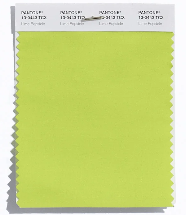 Lime Popsicle is a medium-toned color from the Pantone TCX collection, identified by the code 13-0443 TCX. This cool tone with its balanced character makes it an excellent choice for natural products, military themes, and earthy design.