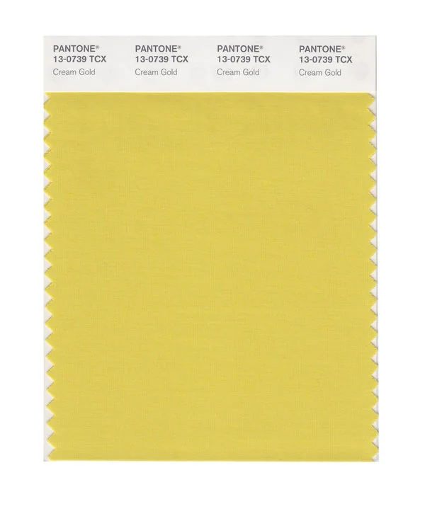 Cream Gold is a medium-toned color from the Pantone TCX collection, identified by the code 13-0739 TCX. This warm tone with its balanced character makes it an excellent choice for luxury branding, premium products, and elegant accents.