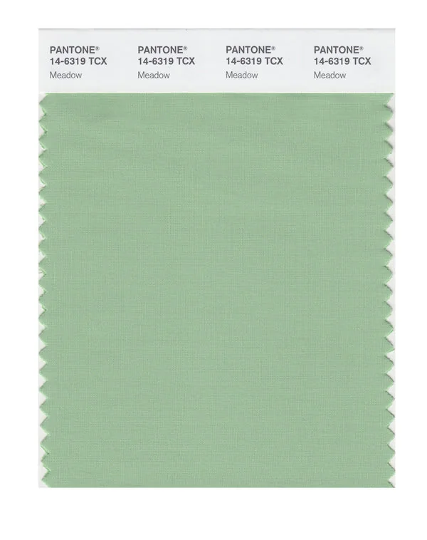 Meadow is a medium-toned green from the Pantone TCX collection, identified by the code 14-6319 TCX. This cool tone with its balanced character makes it an excellent choice for sustainability, nature brands, and eco-friendly design.