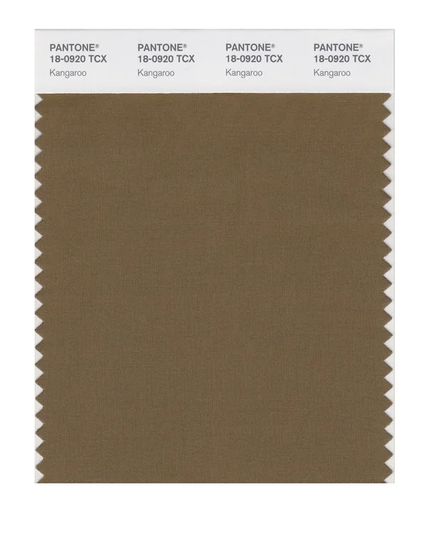 Kangaroo is a medium-toned brown from the Pantone TCX collection, identified by the code 18-0920 TCX. This warm tone with its balanced character makes it an excellent choice for natural products, rustic design, and earthy branding.
