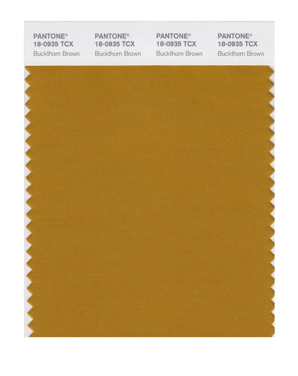 Buckthorn Brown is a medium-toned brown from the Pantone TCX collection, identified by the code 18-0935 TCX. This warm tone with its balanced character makes it an excellent choice for natural products, rustic design, and earthy branding.