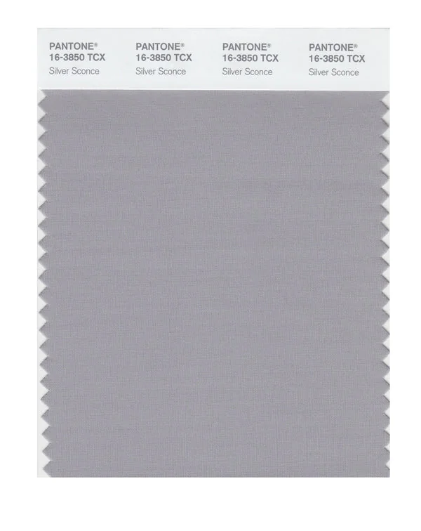 Silver Sconce is a medium-toned gray from the Pantone TCX collection, identified by the code 16-3850 TCX. This cool tone with its balanced character makes it an excellent choice for professional environments, industrial design, and neutral foundations.