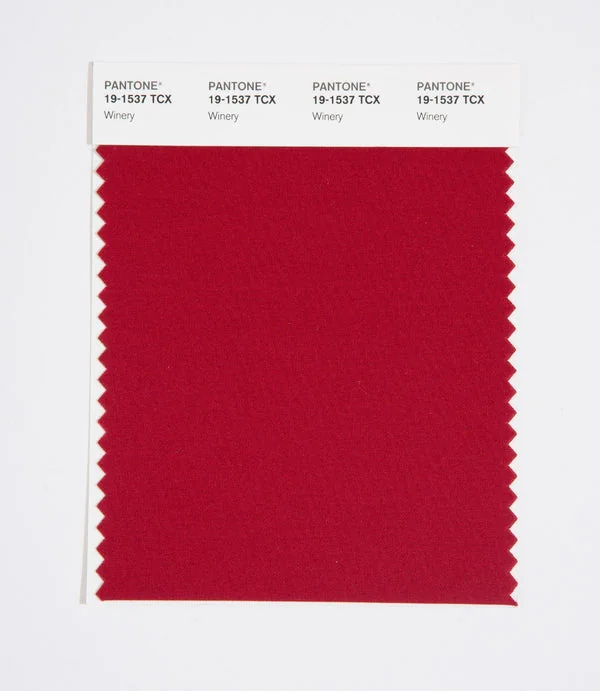 Winery is a medium-toned red from the Pantone TCX collection, identified by the code 19-1537 TCX. This warm tone with its balanced character makes it an excellent choice for bold branding, passionate designs, and statement pieces.
