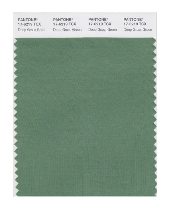 Deep Grass Green is a medium-toned color from the Pantone TCX collection, identified by the code 17-6219 TCX. This cool tone with its balanced character makes it an excellent choice for wellness branding, spa environments, and serene design.