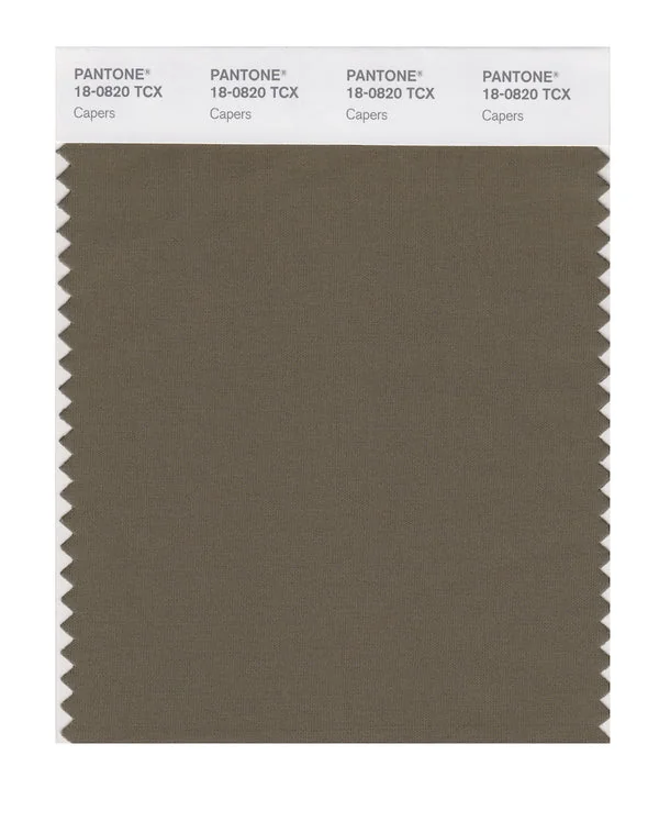 Capers is a medium-toned brown from the Pantone TCX collection, identified by the code 18-0820 TCX. This warm tone with its balanced character makes it an excellent choice for natural products, rustic design, and earthy branding.