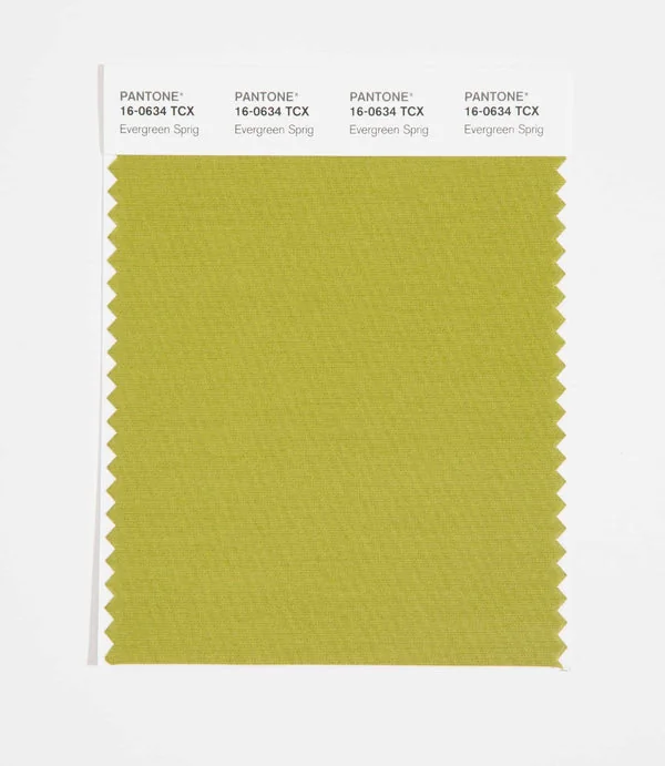 Evergreen Sprig is a medium-toned color from the Pantone TCX collection, identified by the code 16-0634 TCX. This warm tone with its balanced character makes it an excellent choice for natural products, military themes, and earthy design.