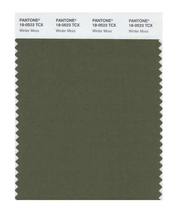 Winter Moss is a medium-toned color from the Pantone TCX collection, identified by the code 18-0523 TCX. This warm tone with its balanced character makes it an excellent choice for natural products, military themes, and earthy design.