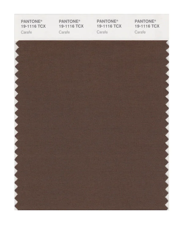 Carafe is a deep and rich brown from the Pantone TCX collection, identified by the code 19-1116 TCX. This warm tone with its balanced character makes it an excellent choice for natural products, rustic design, and earthy branding.