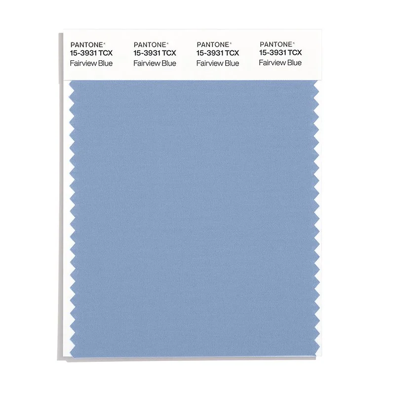 Fairview Blue is a medium-toned blue from the Pantone TCX collection, identified by the code 15-3931 TCX. This cool tone with its balanced character makes it an excellent choice for corporate branding, healthcare, and professional design.