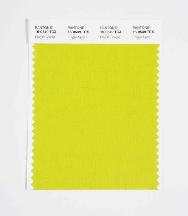 Fragile Sprout is a medium-toned color from the Pantone TCX collection, identified by the code 15-0549 TCX. This cool tone with its balanced character makes it an excellent choice for natural products, military themes, and earthy design.