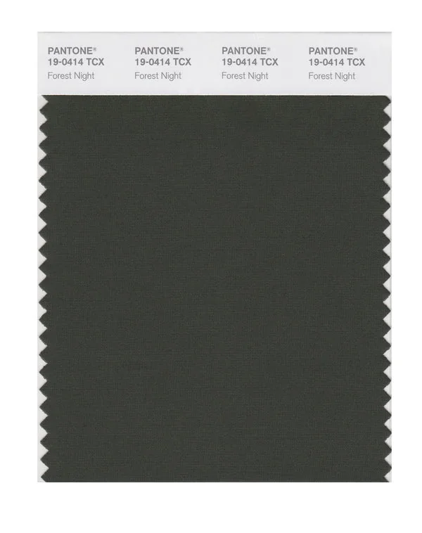 Forest Night is a deep and rich brown from the Pantone TCX collection, identified by the code 19-0414 TCX. This warm tone with its balanced character makes it an excellent choice for natural products, rustic design, and earthy branding.