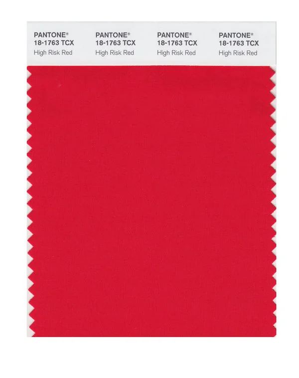 High Risk Red is a medium-toned red from the Pantone TCX collection, identified by the code 18-1763 TCX. This warm tone with its vibrant and bold character makes it an excellent choice for bold branding, passionate designs, and statement pieces.